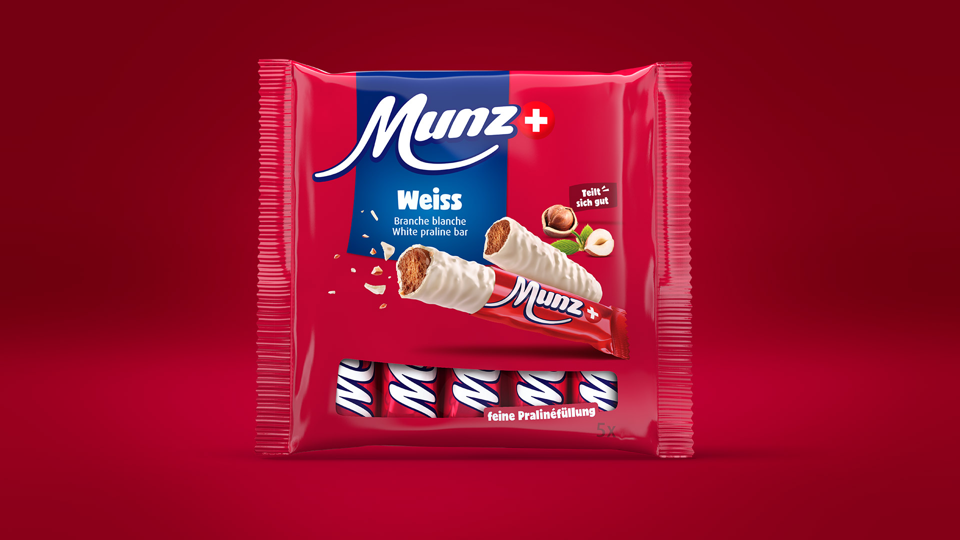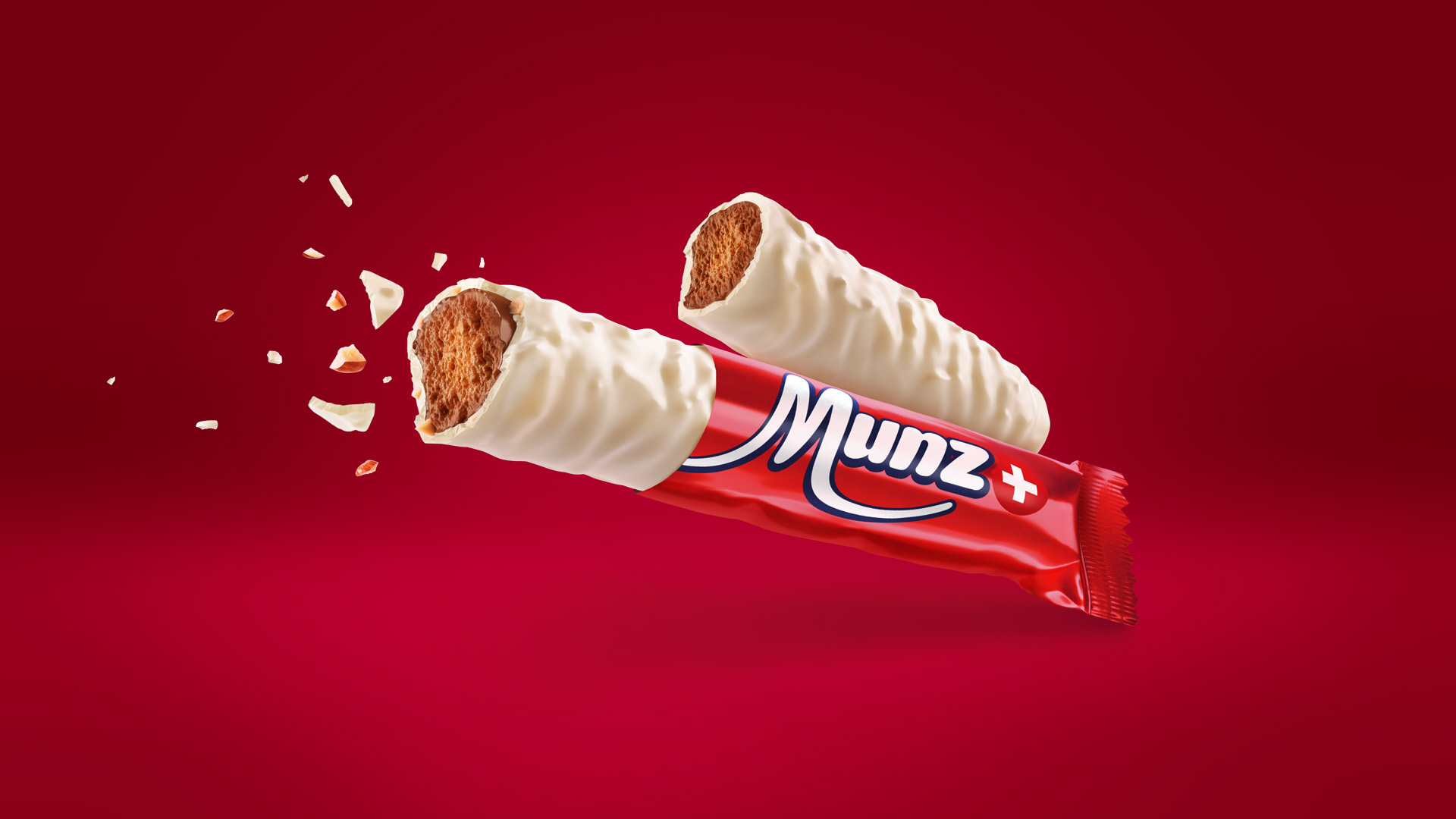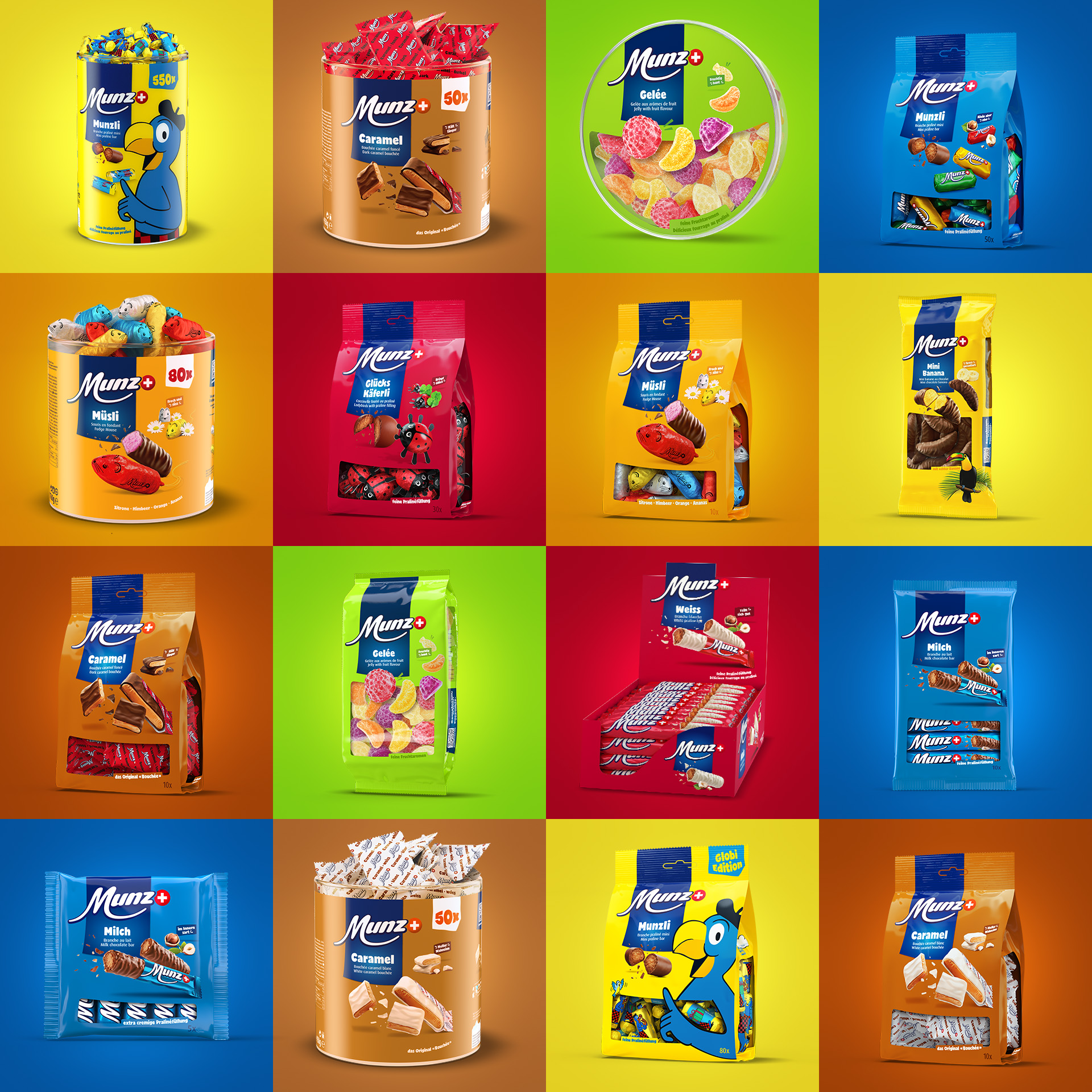 Im Rahmen der neuen Initiative «Gemeinsam ist besser» wurde das gesamte Verpackungsdesign der Ostschweizer Schokoladenmarke Munz vollständig überarbeitet. Dafür haben wir die starken Produkt-Ikonen wie das weisse Munz-Prügeli, die Munz Schoggibanane oder der Munz Glückskäfer vollständig in 3D aufgebaut und attraktiv in Szene gesetzt. Zudem haben wir sämtliche Produktabbildungen für die Verpackungen erstellt und die Verpackungsrenderings umgesetzt. Der grosse Vorteil für den Kunden: allfällige Änderungen im Design lassen sich schnell adaptieren und der Kunde spart sich das Geld für teure Fotoshootings. Der Abbinder des TV-Werbespots mit der animierten Schoggibanane stammt ebenfalls aus dem Hause Sénic.